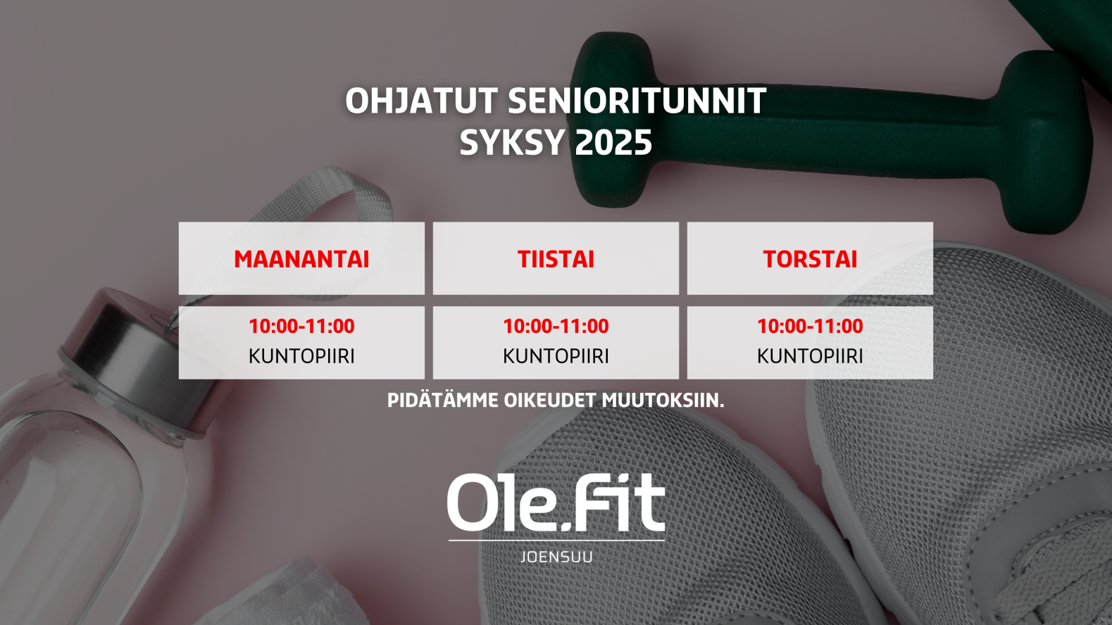 Ole.Fit Joensuu tulee tarjoamaan aamupäivisin ohjattuja tunteja vanhemmalle väestölle. Tunnit kuuluvat kuntosalijäsenyyden hintaan.